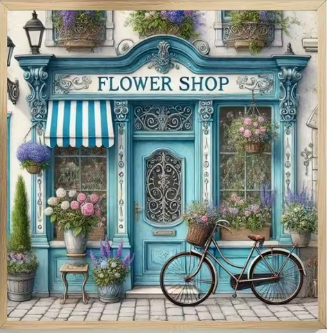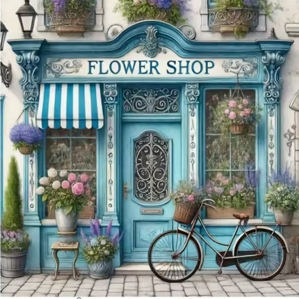 Cross Stich Kreuzstich Stickpackung BILD-Blumenhandlung 36x36cm