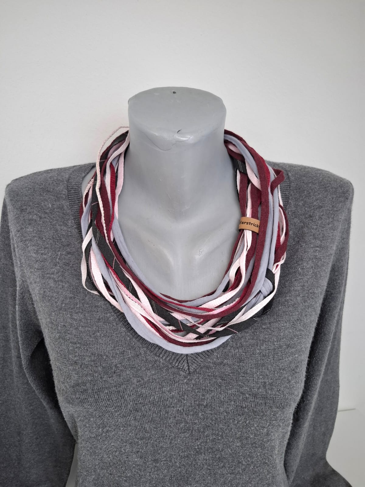 Handgeknüpfter Loop-Schal aus Baumwoll- und Satinbändern