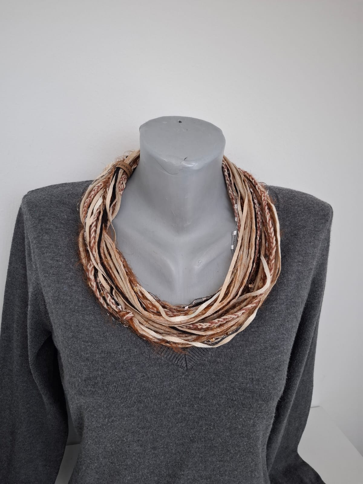 Loop-Schal Milchschokolade, handgeknüpft