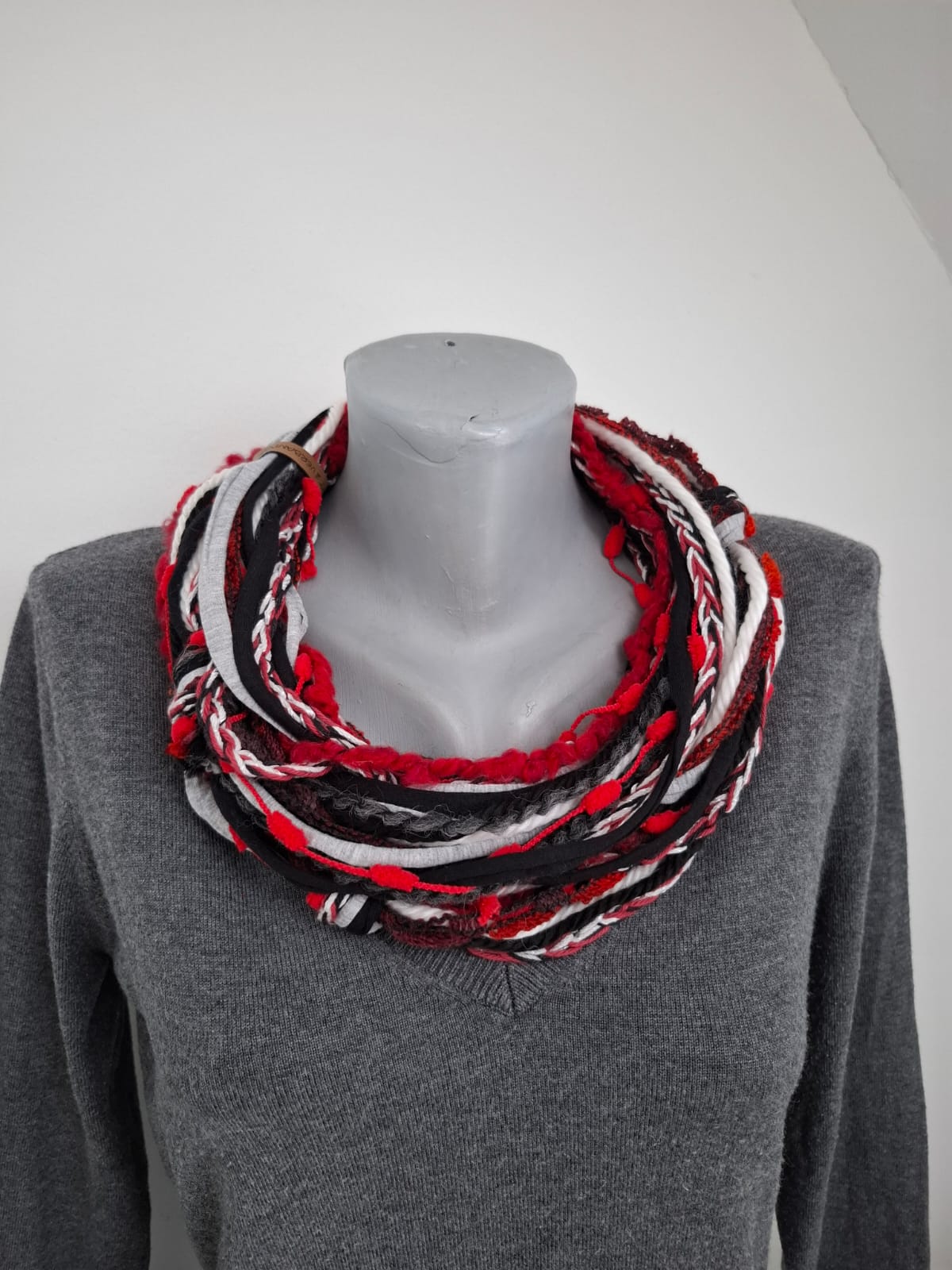 Handgeknüpfter Loop-Schal aus Wollbändern