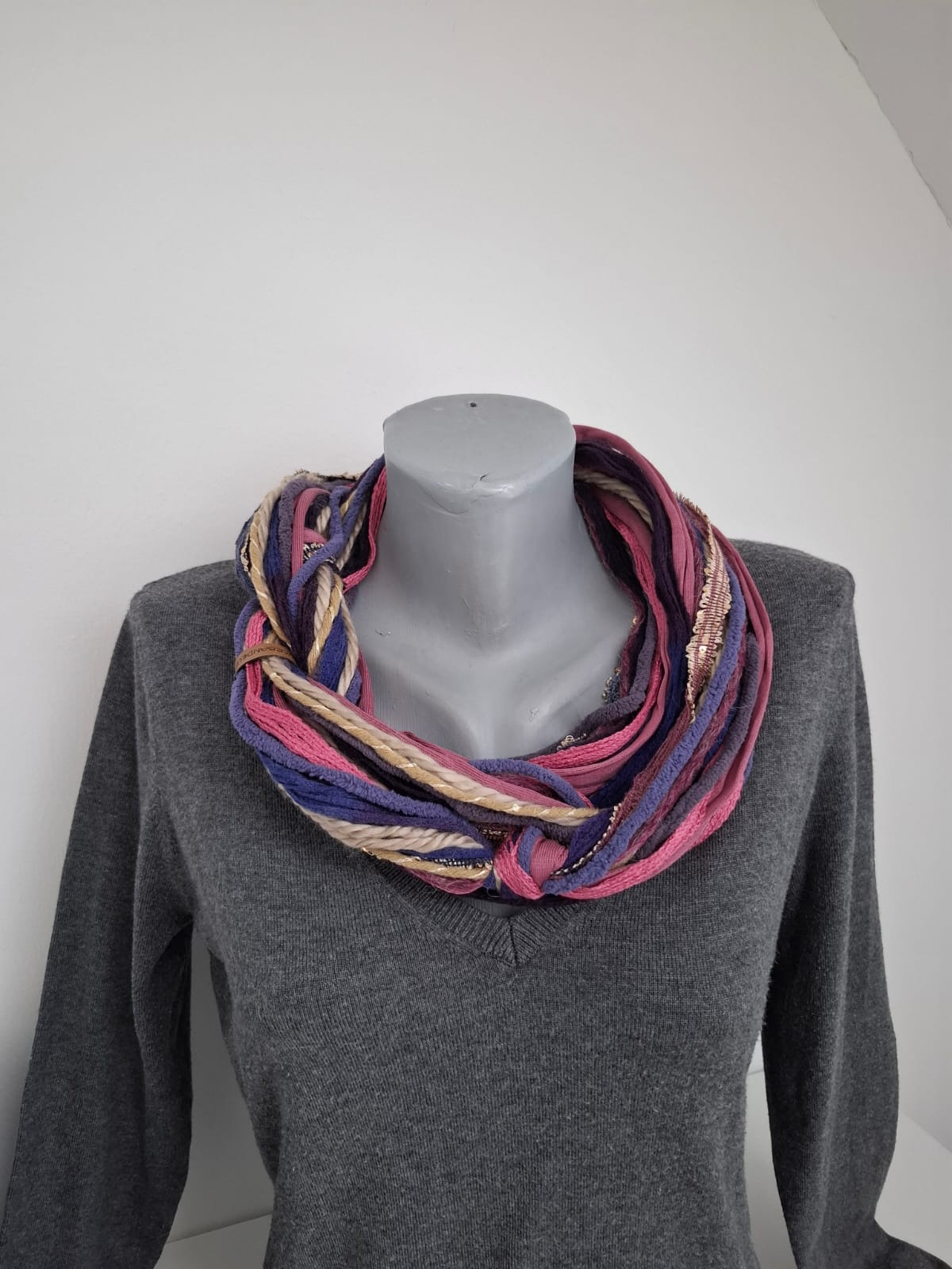 Handgeknüpfter Loop-Schal aus Wollbändern